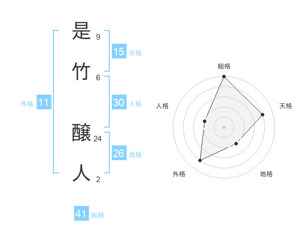 是竹 醸人さんの総格は41画の5点!