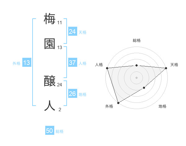 梅園 醸人さんを姓名の画数から五運を鑑定