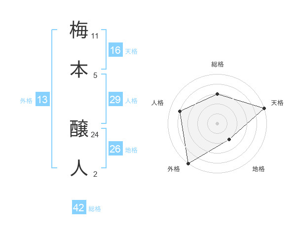 梅本 醸人さんを姓名の画数から五運を鑑定