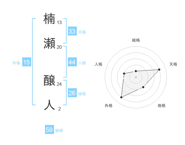 楠瀬 醸人さんの総格は59画の1点!