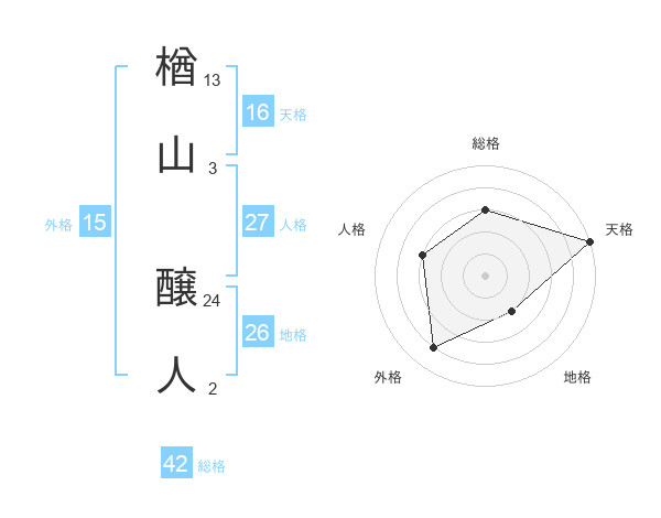 楢山 醸人さんの天格は16画の5点!