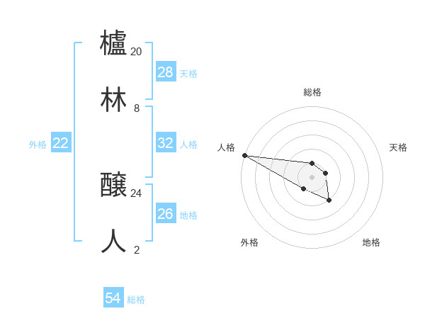 櫨林 醸人さんを姓名の画数から五運を鑑定