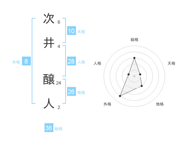 次井 醸人さんの総格は36画の3点!
