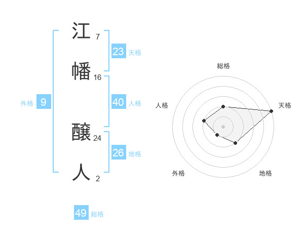 江幡 醸人さんの総格は49画の2点!