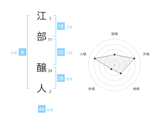 江部 醸人さんの総格は44画の2点!