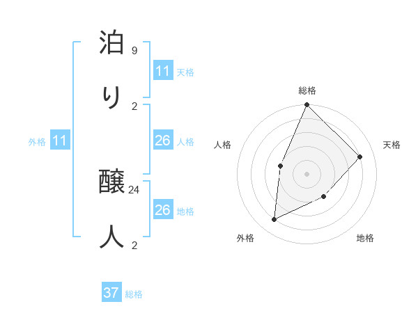 泊り 醸人さんを姓名の画数から五運を鑑定