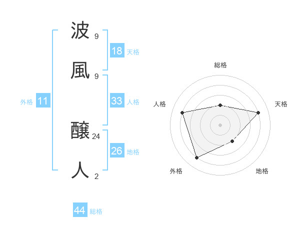 波風 醸人さんの総格は44画の2点!