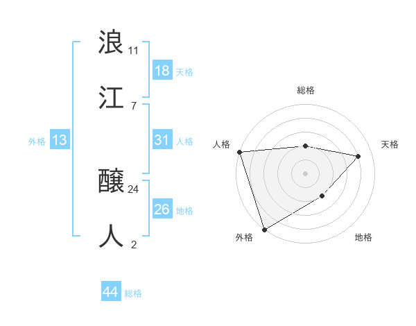 浪江 醸人さんを姓名の画数から五運を鑑定