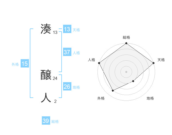湊 醸人さんの総格は39画の5点!