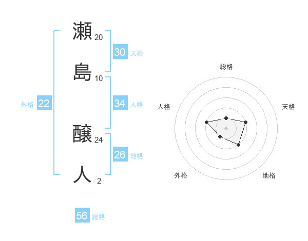 瀬島 醸人さんの総格は56画の1点!