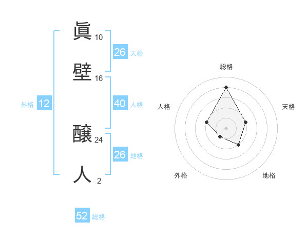 眞壁 醸人さんの地格は26画の2点!