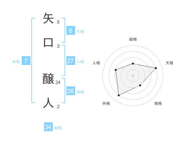 矢口 醸人さんを姓名の画数から五運を鑑定