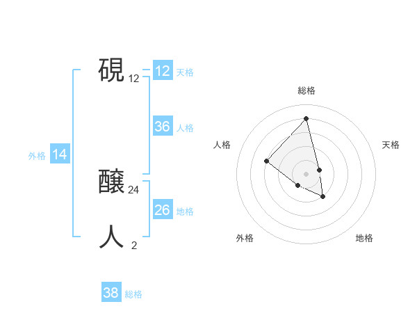 硯 醸人さんの総格は38画の4点!