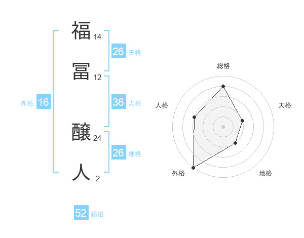 福冨 醸人さんの総格は52画の4点!