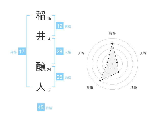 稲井 醸人さんの総格は45画の4点!