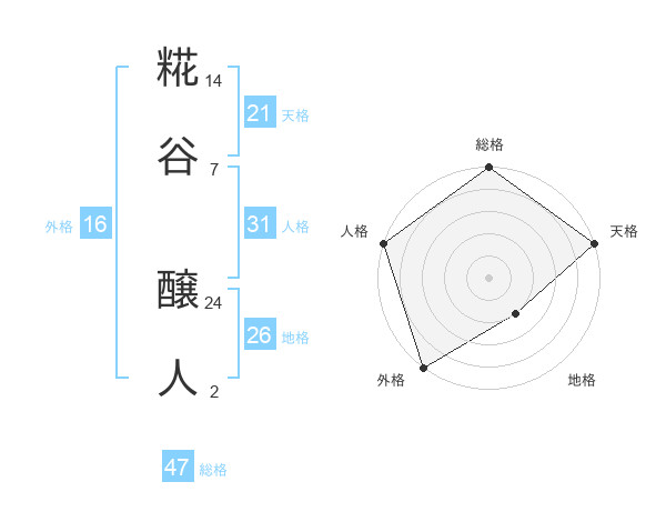 糀谷 醸人さんの総格は47画の5点!