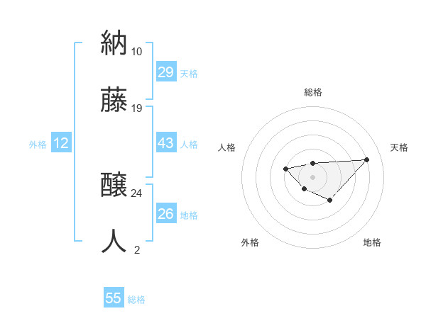 納藤 醸人さんを姓名の画数から五運を鑑定