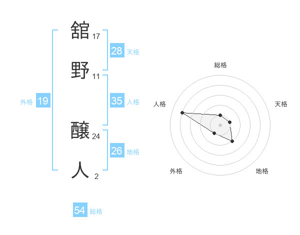 舘野 醸人さんを姓名の画数から五運を鑑定