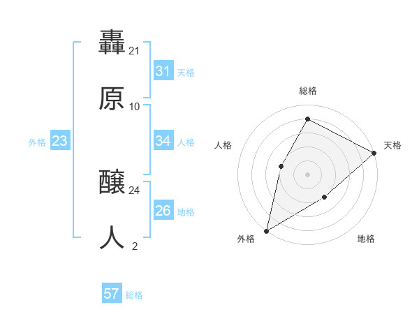 轟原 醸人さんを姓名の画数から五運を鑑定