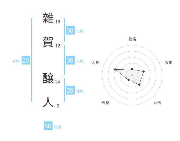 雜賀 醸人さんの総格は56画の1点!