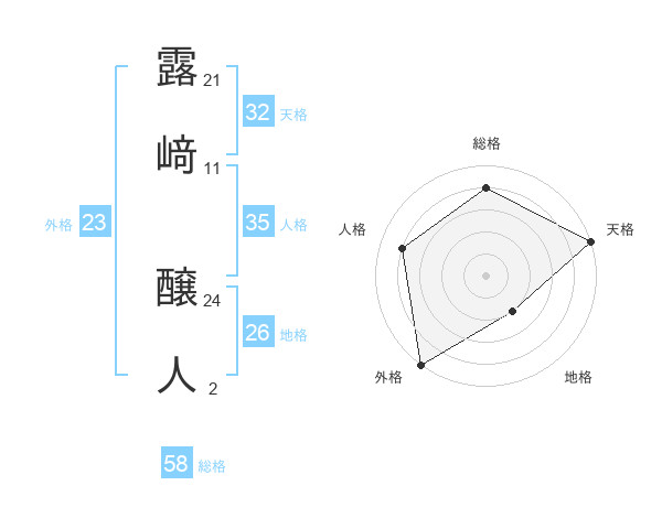 露﨑 醸人さんを姓名の画数から五運を鑑定