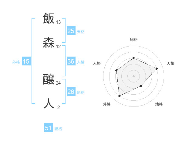 飯森 醸人さんを姓名の画数から五運を鑑定