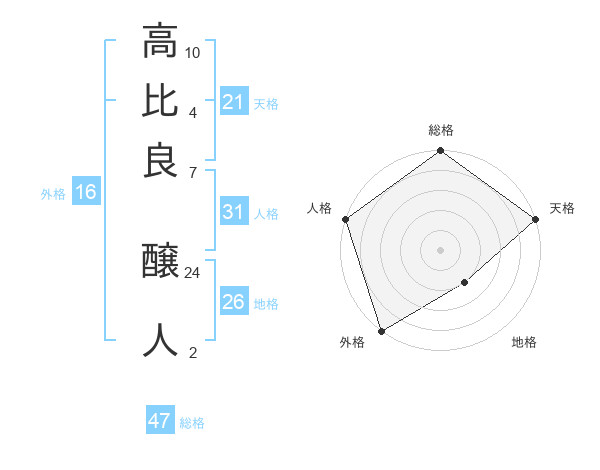 高比良 醸人さんを姓名の画数から五運を鑑定