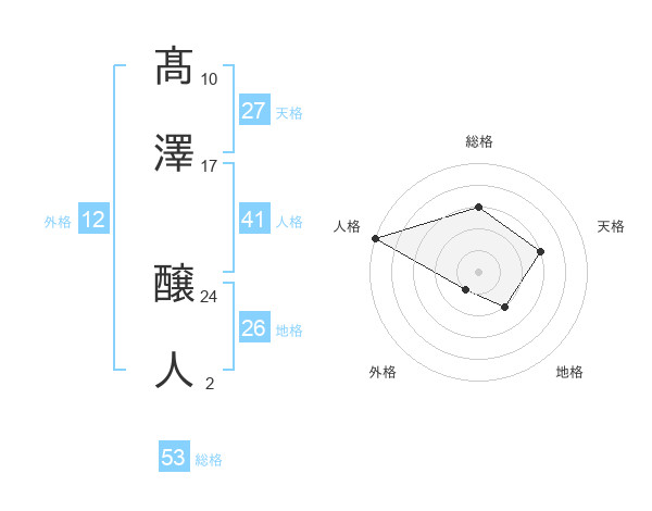 髙澤 醸人さんを姓名の画数から五運を鑑定