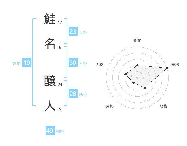 鮭名 醸人さんの総格は49画の2点!