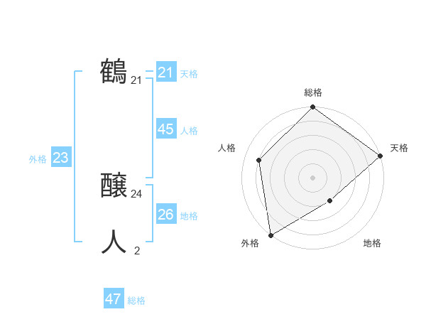 鶴 醸人さんの総格は47画の5点!