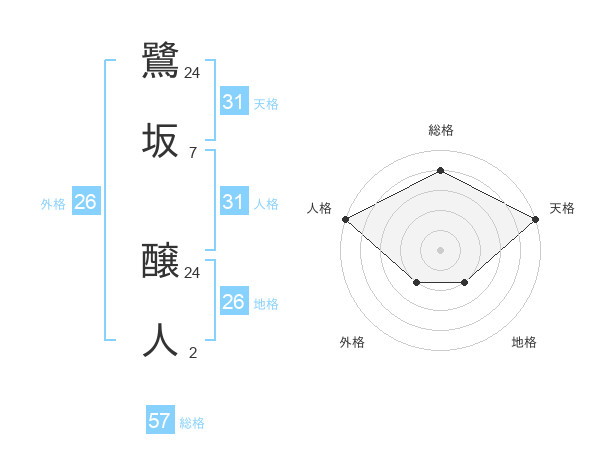 鷺坂 醸人さんの地格は26画の2点!