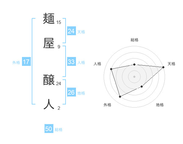 麺屋 醸人さんを姓名の画数から五運を鑑定