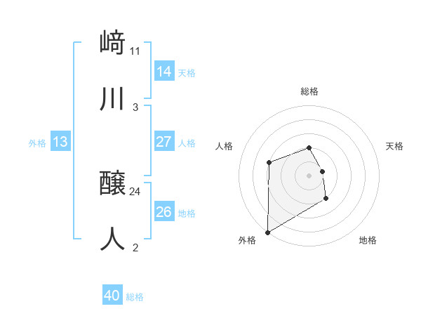 﨑川 醸人さんの総格は40画の2点!