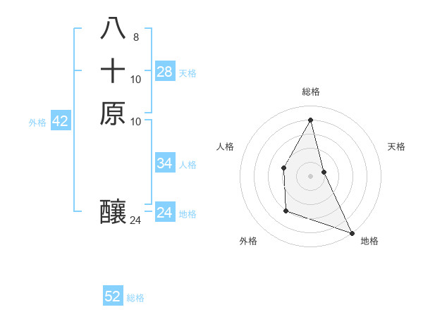 八十原 釀さんの総格は52画の4点!