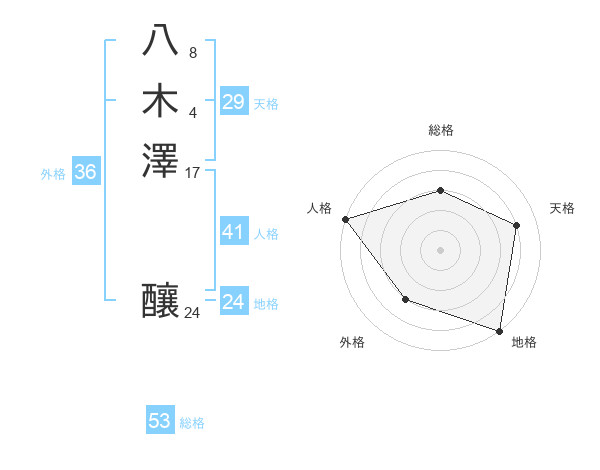 八木澤 釀さんの天格は29画の4点!