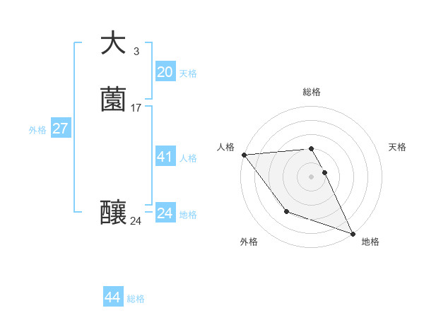 大薗 釀さんの天格は20画の1点!