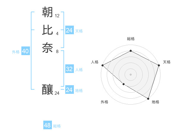 朝比奈 釀さんの総格は48画の4点!