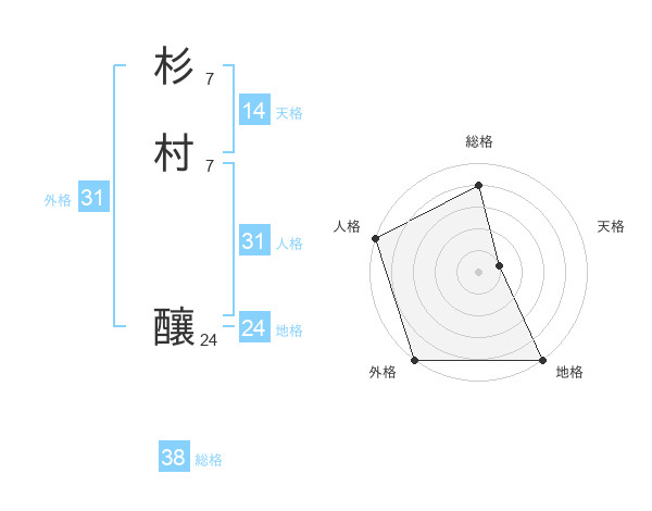 杉村 釀さんの総格は38画の4点!