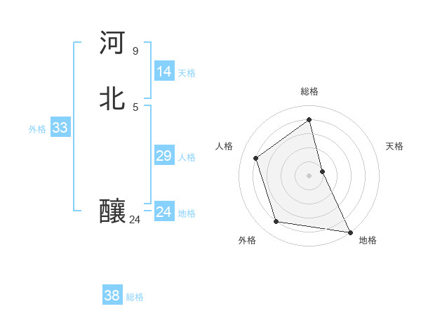 河北 釀さんの総格は38画の4点!