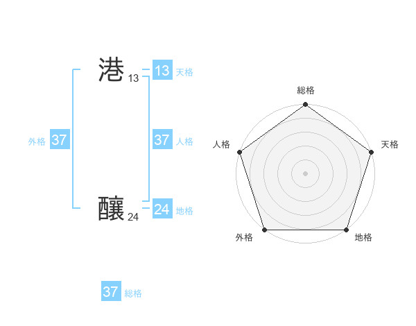 港 釀さんの総格は37画の5点!