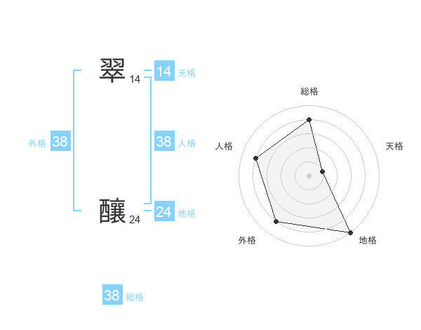 翠 釀さんの総格は38画の4点!