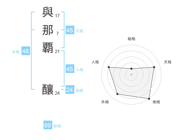 與那覇 釀さんを姓名の画数から五運を鑑定