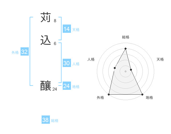 苅込 釀さんの総格は38画の4点!