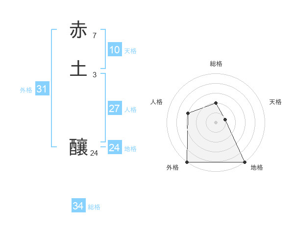 赤土 釀さんの総格は34画の2点!
