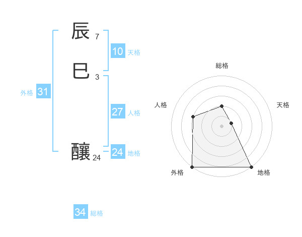 辰巳 釀さんの総格は34画の2点!