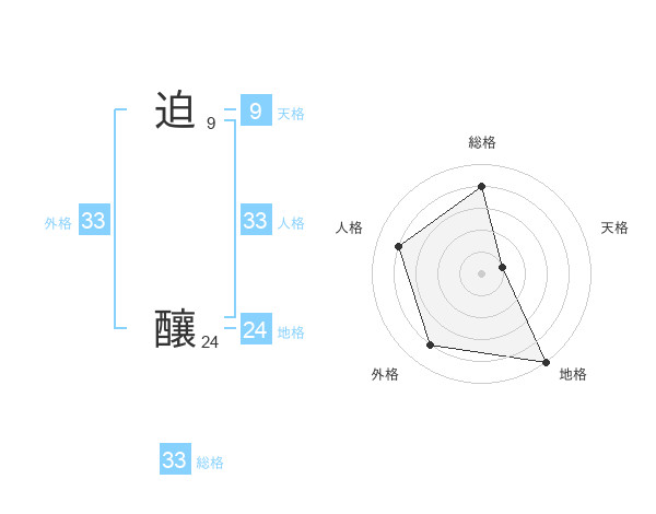 迫 釀さんの外格は33画の4点!