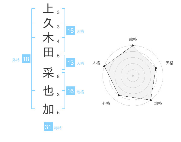 上久木田 采也加さんを姓名の画数から五運を鑑定