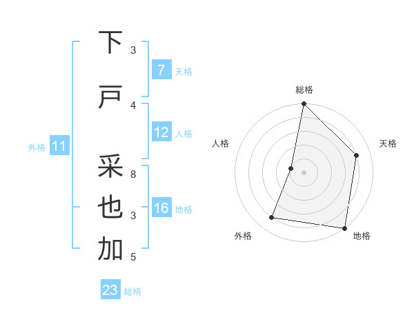 下戸 采也加さんを姓名の画数から五運を鑑定