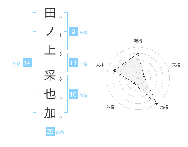 田ノ上 采也加さんを姓名の画数から五運を鑑定