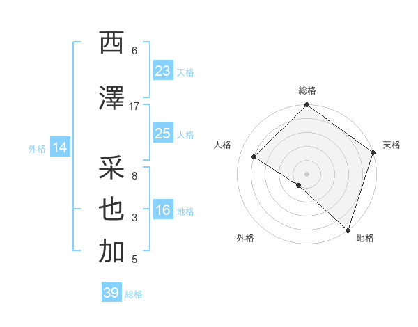 西澤 采也加さんを姓名の画数から五運を鑑定